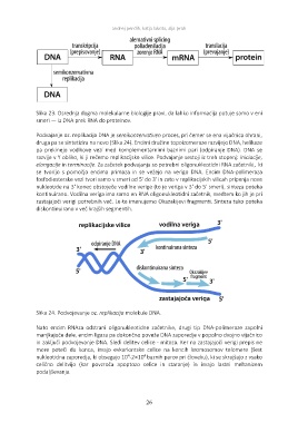 druga pa se sintetizira na novo (Slika 24). Encimi družine topoizomeraze razvijejo DNA, helikaze