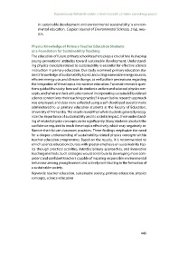 ing physics concepts related to sustainability is essential for effective science