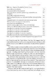 The table on adoption of sustainability practices shows that Greek ac-