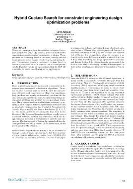 design optimization, hybridization, cuckoo search, self-adaptation Since the HSA-CS belongs to the SI-based algorithms, it