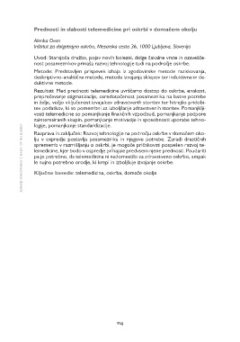 avje starostnikov | health of the elderly  Prednosti in slabosti telemedicine pri oskrbi v domačem okolju