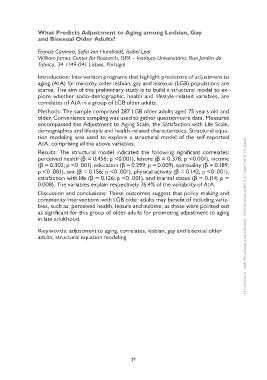 Keywords: adjustment to aging, correlates, lesbian, gay and bisexual older